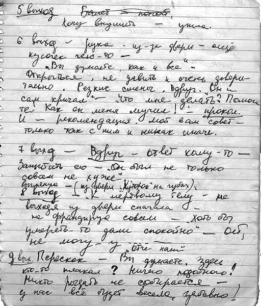 А это другое. Мне не слова важны, мне важна энергетика, которая на этих страницах была в то мгновение, когда это создавалось. Какие-то вещи… Потом тут у меня какие-то графики. Как получалось? Допустим, мы репетировали с Гинкасом, репетиция заканчивалась, или он куда-то убегал на полчаса.