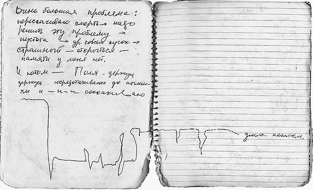 "Вся легкость для того, чтобы закрыть эту пропасть, пустоту, бездну". А бездна – это то, что все. Он ушел, и – все, и я: "А!" И отрезал. Это катастрофа, это внезапно, не было с ним прощания никакого. Хотя когда она его переворачивала, он написал записку, но все уже, жизнь-то уже с ним прошла. И ничего нет.