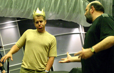 БОРИСЛАВ. Борислав – просто чудо–человек. Когда ставили «Короля», я только пришла в театр и не совсем еще понимала что к чему, и Борислав ко мне отнесся как папа. Он настолько чувствует людей. Хотя мы с ним не общались о какой-то личной жизни, он постепенно так хорошо меня узнал, что рассказал про меня все, что я сама о себе знаю, и потому я совершенно доверилась ему, и он “влил” меня в этот образ, хотя, может быть, сейчас, так как он не приезжает и не подкрепляет нас своим духом, я что-то теряю и мне тяжело. Все таки необходимо, чтобы режиссер довлел над актерами. Режиссер для меня все: что он говорит, то я и буду делать, и я ему доверюсь. Даже если я не согласна, я сто раз поплачу, но я буду делать, то, что говорит режиссер. А Борислав - чудесный человек, он мог в глаза мне посмотреть, и я понимала все, что нужно сыграть, все, что я не доделала, не дожила, в чем я ошиблась. И мне было перед ним безумно стыдно, хотя это глупость, это ошибки – это нормально. Так и должно быть. Но мне было так стыдно, когда я чего-то не понимала, я не знаю почему... Мне так хотелось, чтобы все было правильно. Было страшно задавать ему вопросы, потому что когда он отвечал, я сразу думала: «Как же я сама до этого не додумалась, ведь это так просто, так близко». И я краснела, как всегда. Я очень жду, что он приедет, хотя и боюсь, так как понимаю, что, может быть, много стала самовольничать. Не хватает его мнения. Хотя в последний момент он мне уже практически ничего не говорил, и я нервничала, потому что переставала понимать, нормально ли я что-то делаю. Но он говорил, что я вырулила куда надо.